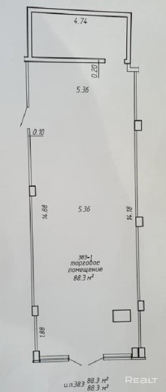 Коммерческое помещение площадью - 88,3 м2 располагается на бульваре «Пикассо», в 350 метрах от ст. метро «Восток».