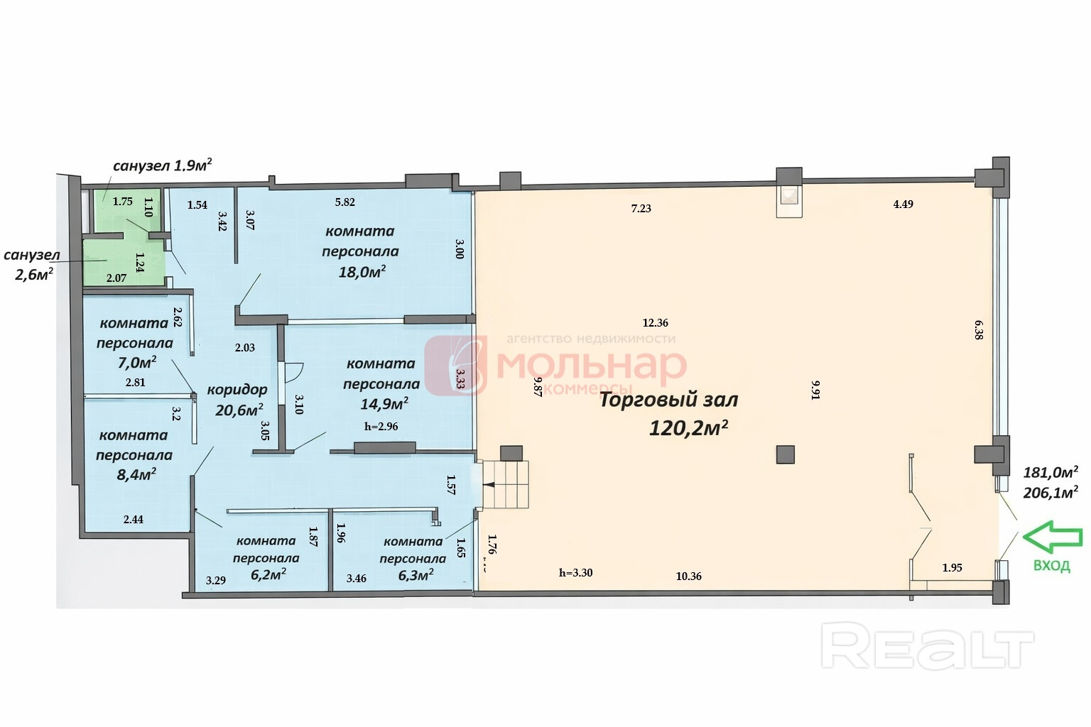 - торговый зал 120,2 м2;