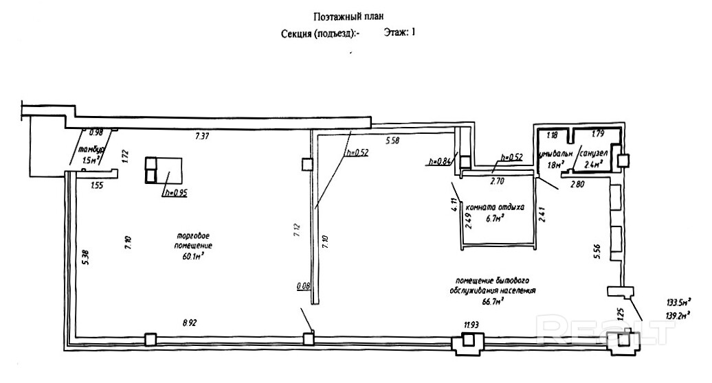 В продаже торговое помещение на первом этаже площадью 139,2м2 на первом этаже