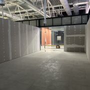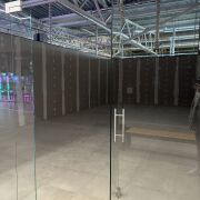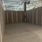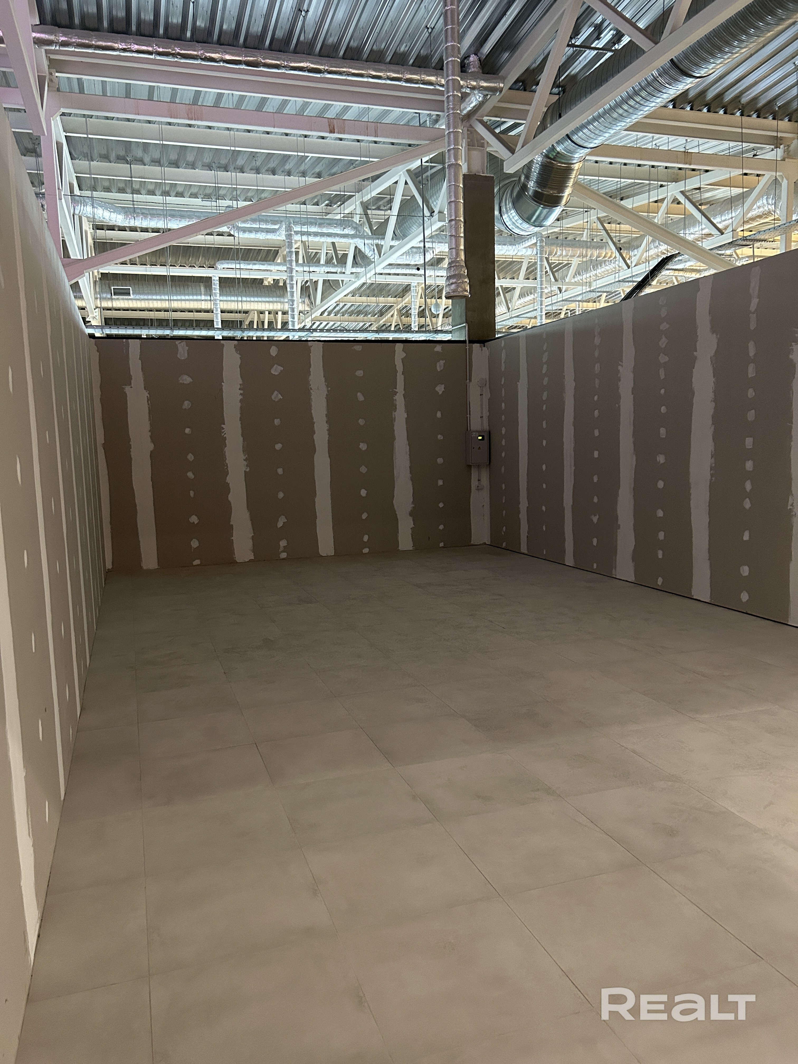 Помещение удобной формы для создания офисной и/ или складской, торговой зоны, стены оштукатурены, на полу керамическая плитка.