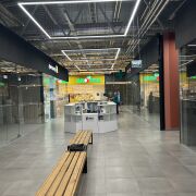 На 1 этаже в торговом зале располагается продуктовый оператор «Дионис», зоны кафе, фастфуд на 400 м2, детский развлекательный центр, детская площадка, зона для графити и скейтов и иные пространства для мам и детей. Торговый центр окружен высотными жилыми домами, удобное транспортное сообщение, от ст.м. «Каменная горка» 10 минут пешком, либо две остановки на общественном транспорте. Удобный выезд на МКАД.