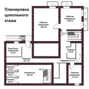 Помещение занимает первый и цокольный этажи жилого дома и имеет 3 собственных входа, на цоколе расположены санузлы,помещения свободного назначения.