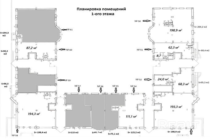 Почти все помещения имеют по 2 входа, один с улицы, другой со двора, что очень удобно для погрузки-разгрузки или для перемещения персонала.