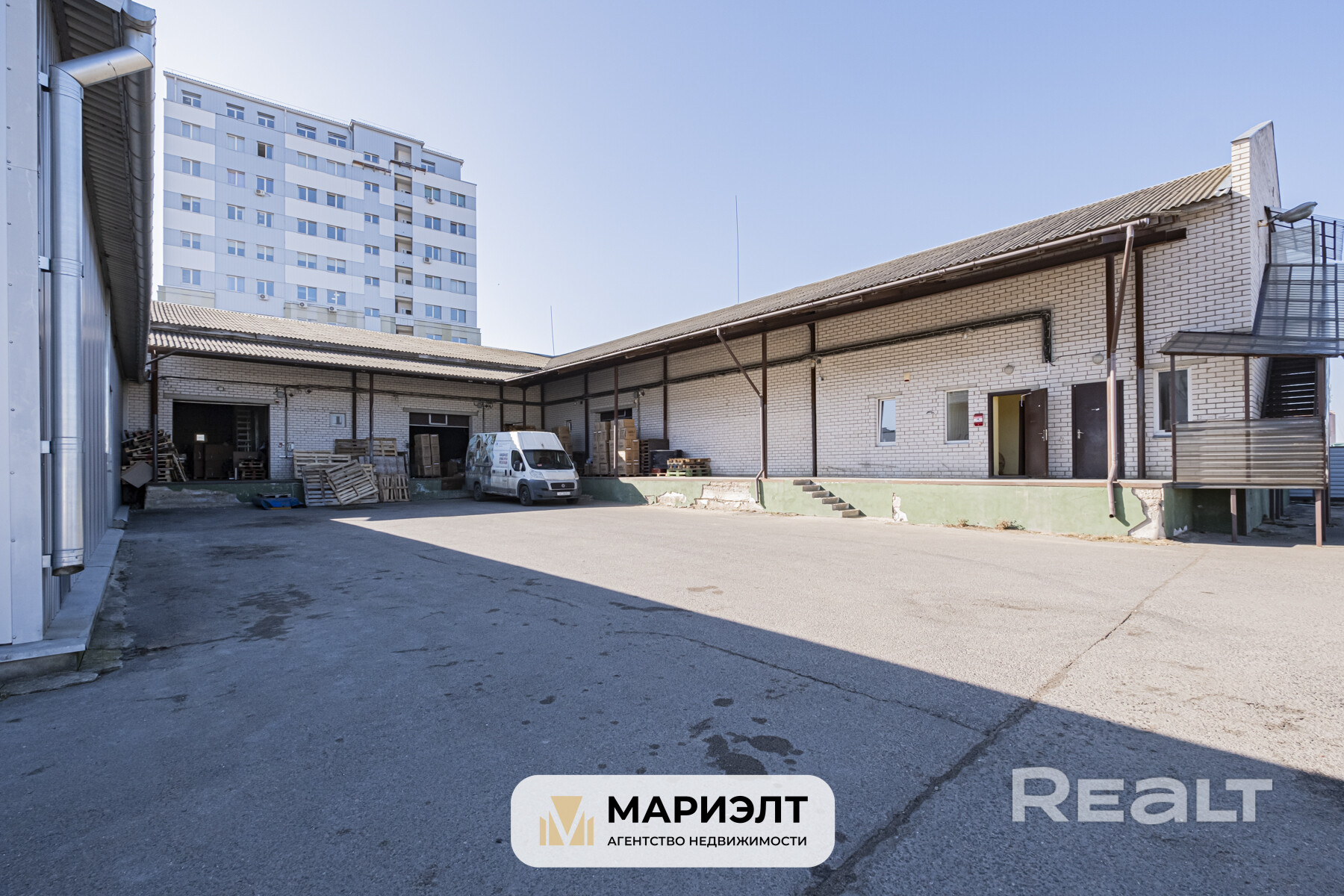 - Ограждённая территория с широким заездом