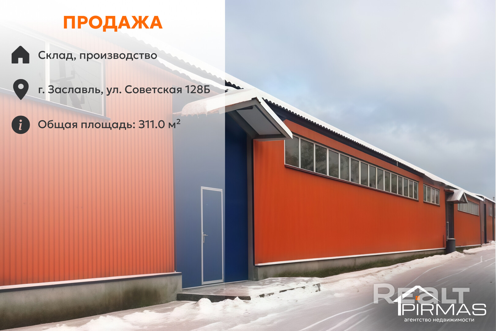 ✅ Склад-производство 311 м² в Заславле, 6,95 м, 60 кВт, охрана, удобные подъезды