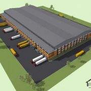 ○ высота склада — 15 м (рабочая), 18 м (в коньке)