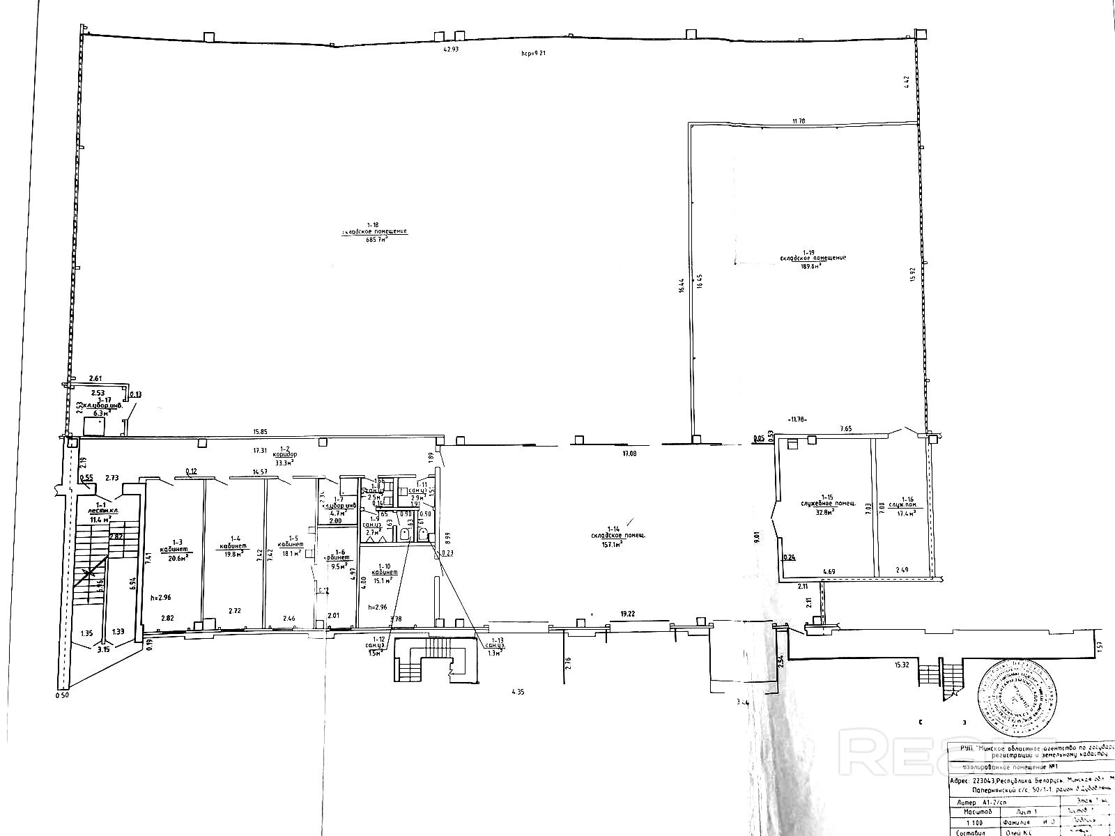 Потолки 9 м. Офисные помещения. Трое ворот с рампой. 1200м2 склад. 400 м2 офис. Адрес: Папернянский с/с,50/1. 3 км от кольцевой. Остановка общественного транспорта. Выезды на 1-ю и 2-ю кольцевые. невысокие эксплуатационные.