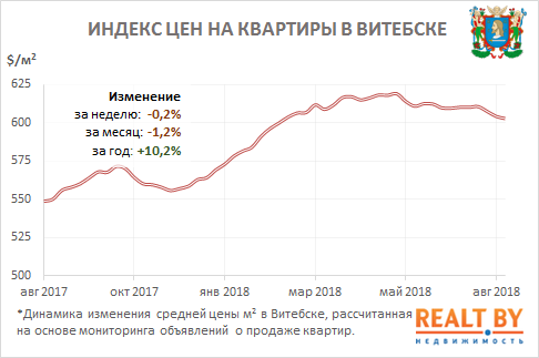 Мониторинг цен предложения квартир в Витебске за 6−13 августа 2018 года
