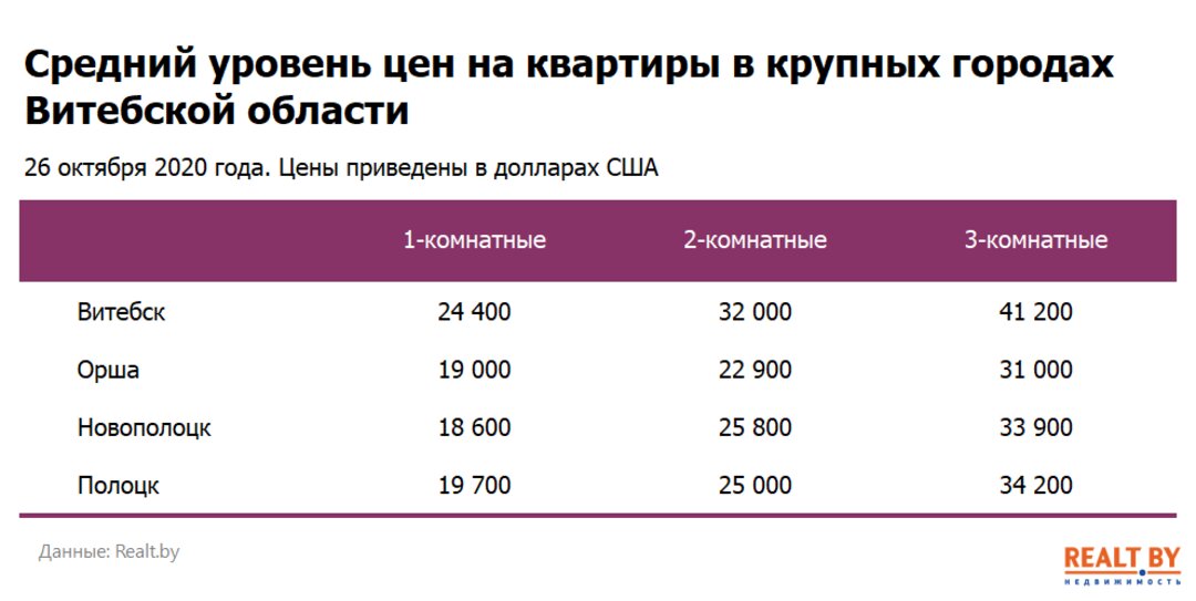 Мониторинг цен предложения квартир в Витебске и городах Витебской области за 19−26 октября 2020 года