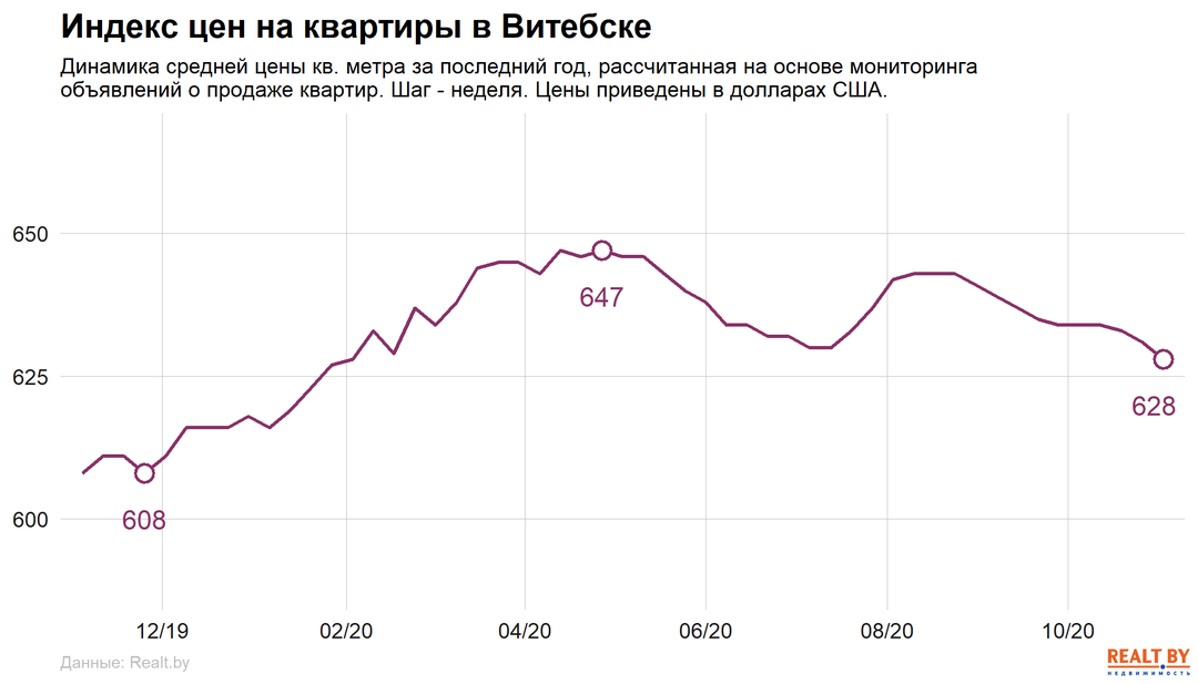 Мониторинг цен предложения квартир в Витебске и городах Витебской области за 26 октября — 2 ноября 2020 года