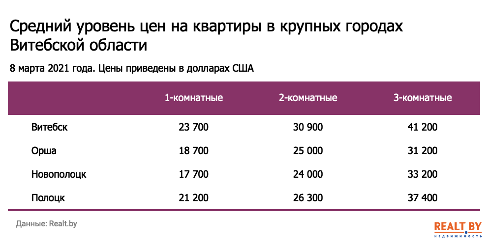 Мониторинг цен предложения квартир в Витебске и городах Витебской области за 1−8 марта 2021 года