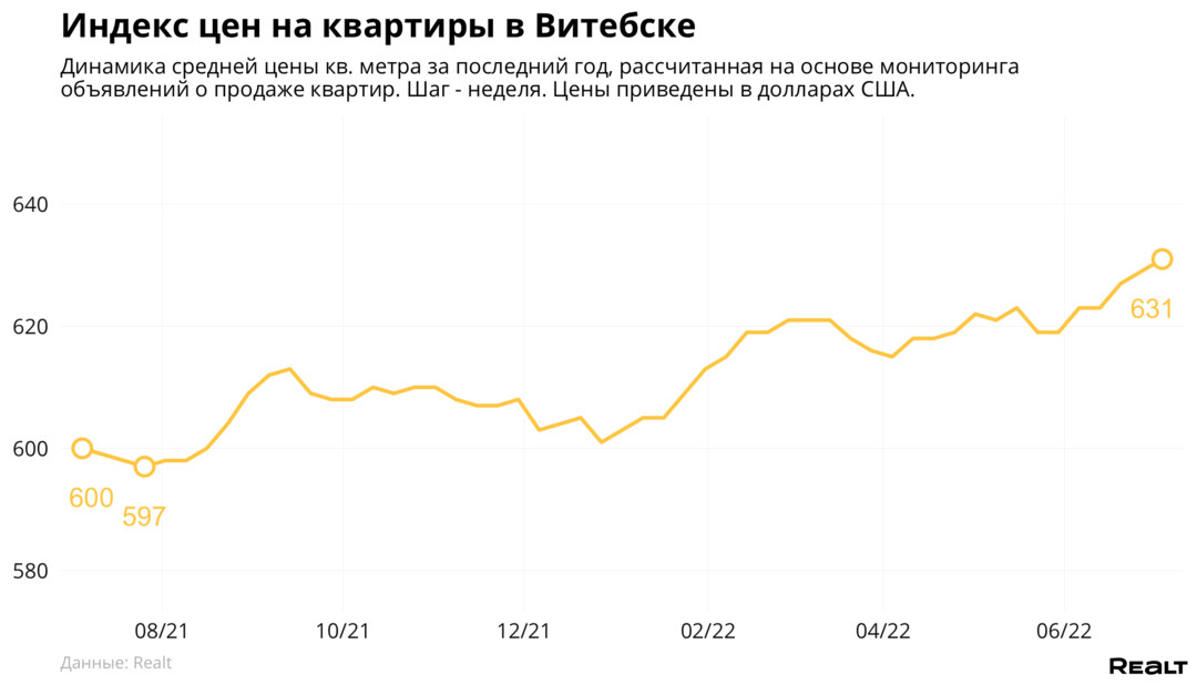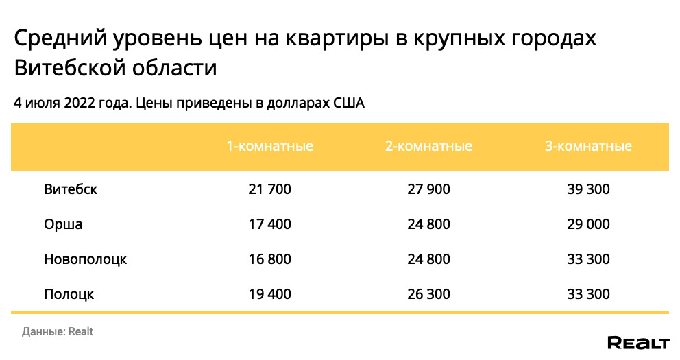 Мониторинг цен предложения квартир в Витебске и городах Витебской области за 27 июня — 4 июля 2022 года