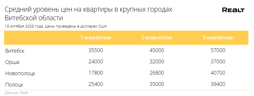 Для сравнения приведем средние цены на квартиры в других городах Беларуси: