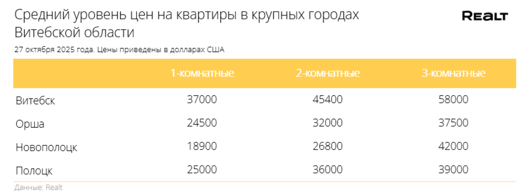Дорожает квадрат двушек. Что произошло со стоимостью квартир в Витебске и области за 20−27 октября 2025 года