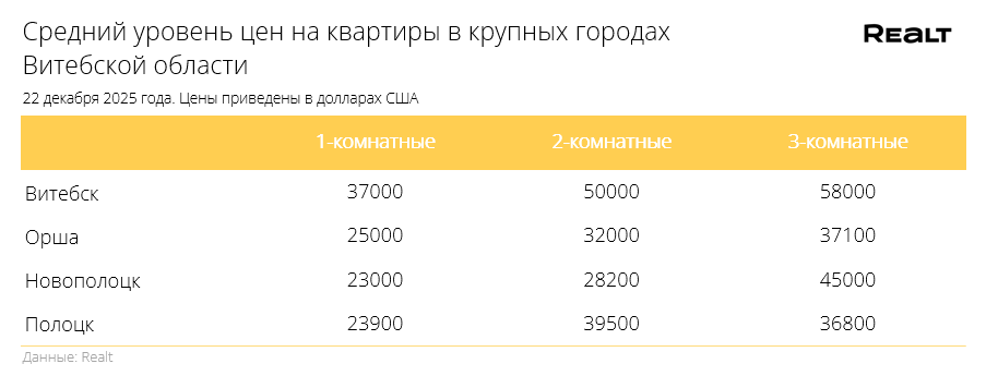 Квадрат однушек подешевел. Что произошло со стоимостью квартир в Витебске и области за 15−22 декабря 2025 года