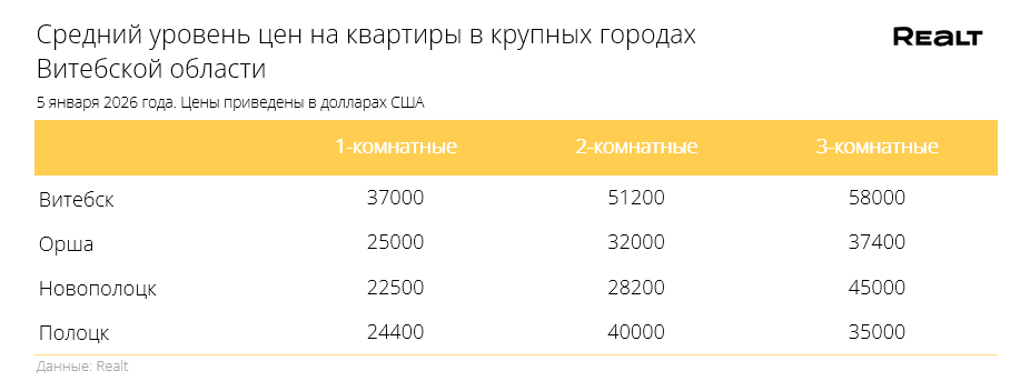 Для сравнения приведем средние цены на квартиры в других городах Беларуси: