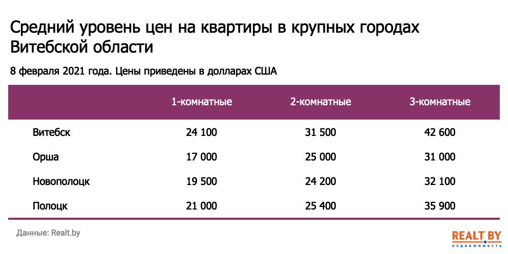 Мониторинг цен предложения квартир в Витебске и городах Витебской области за 1−8 февраля 2021 года