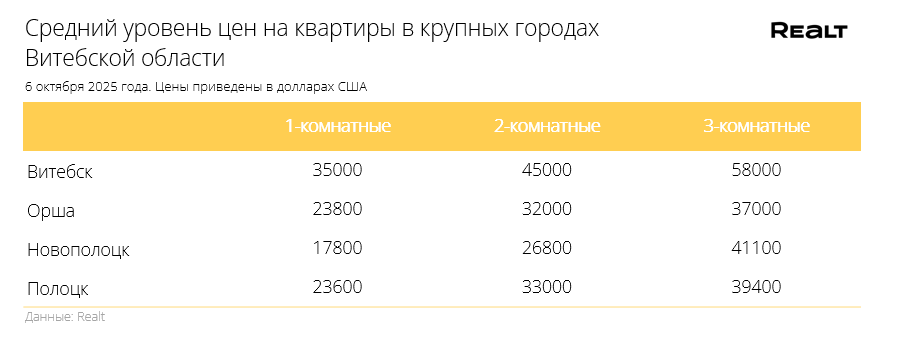 Для сравнения приведем средние цены на квартиры в других городах Беларуси: