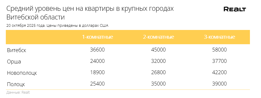 Для сравнения приведем средние цены на квартиры в других городах Беларуси: