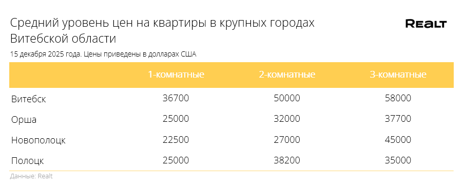 Цена квадрата на однушки пошла вниз. Что произошло со стоимостью квартир в Витебске и области за 8−15 декабря 2025 года