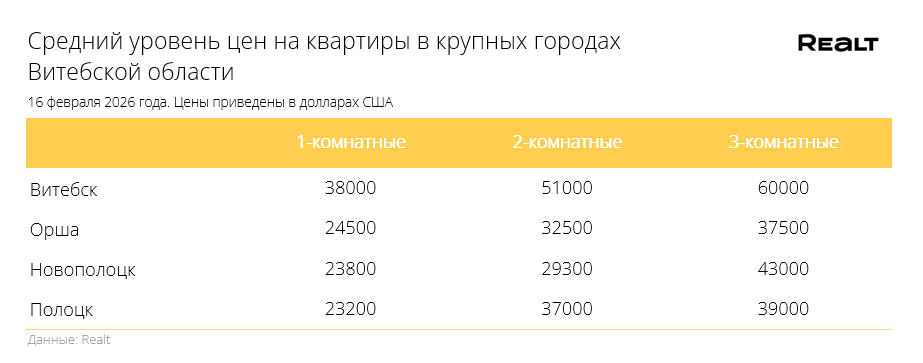 Стоимость квадрата продолжает свой рост. Что произошло со стоимостью квартир в Витебске и области за 9−15 февраля 2026 года