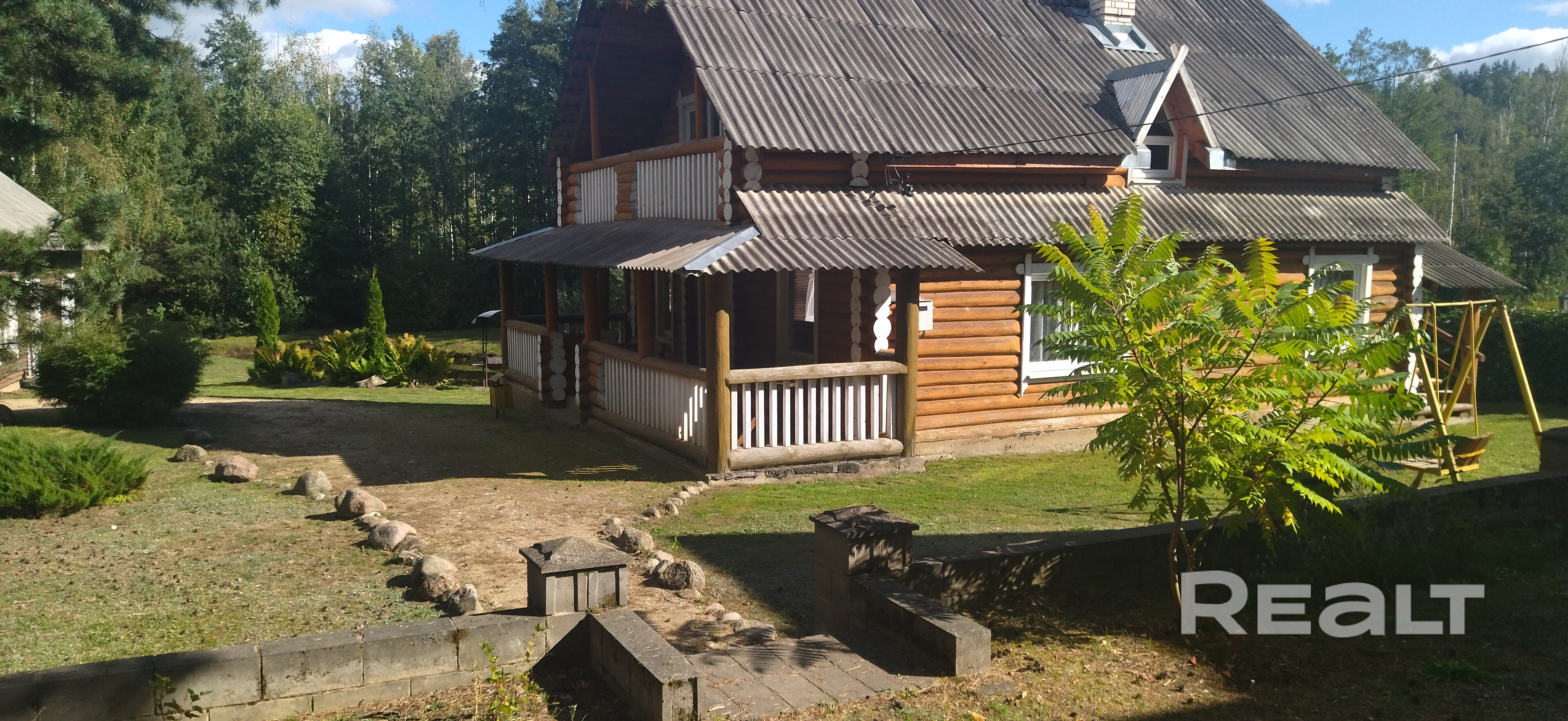 Двухэтажный рубленный коттедж расположен в 5 км от Браслава на озере Ельно хутор Петуховщина, на опушке соснового леса, расстояние до озера около100 метров .
