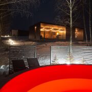 Также у нас есть панорамная сауна c просторной террасой, травяной крышей и уличной купелью на дровах позволяет гостям наслаждаться отдыхом в любое время года.