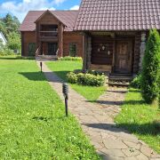 Дом располагается на берегу живописного озера. Берег пологий, песчаный. Обустроенная территория с большой беседкой, мангалом, несколькими пирсами. Имеется детская площадка ( домик, горка, песочница, качели, батут). Также в стоимость входит пользование катамараном. Имеется русская баня. В доме 5спален и 2 просторных холла, а также балкон с красивым видом на озеро. Комфортно размещается компания до 15человек. В комнатах 1 двухспальное место плюс одно дополнительное. Магазин в 150м.