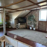 Дом двухквартирный, один собственник, легко перестраивается в одноквартирный. Хорош для семьи - родители- дети-внуки. Две кухни, два совмещенных санузла, входы раздельные через общую веранду. Жилая мансарда с французской буржуйкой, камин на 1 этаже. Пионы, ирисы, черная смородина, яблоня, груша. Сараи, беседка, адекватные соседи. От дороги - живая изгородь. Железный гараж.