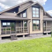 Коттедж - каркасное деревянное строение из высококачественной древесины, возведенное по финской технологии  в 2014 году. Дом построен с соблюдением современных технологий утепления: многослойная конструкция - каркас, качественный утеплитель, пароизоляция, ветрозащита, обшивка - все это делает данное строение очень теплым и энергоэффективным. Такие дома очень быстро прогреваются и отлично сохраняют температуру, что особенно актуально в зимний период, если, например, приезжаешь в дом на зимний отдых, или рыбалку. Крыша - гибкая черепица GAF.