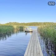 Коттедж располагается непосредственно на берегу озера, участок спускается прямо к воде до озера примерно 30 метров, есть собственный пирс и лодка с электромотором, так как использование других двигателей запрещено в заповеднике законодательством.