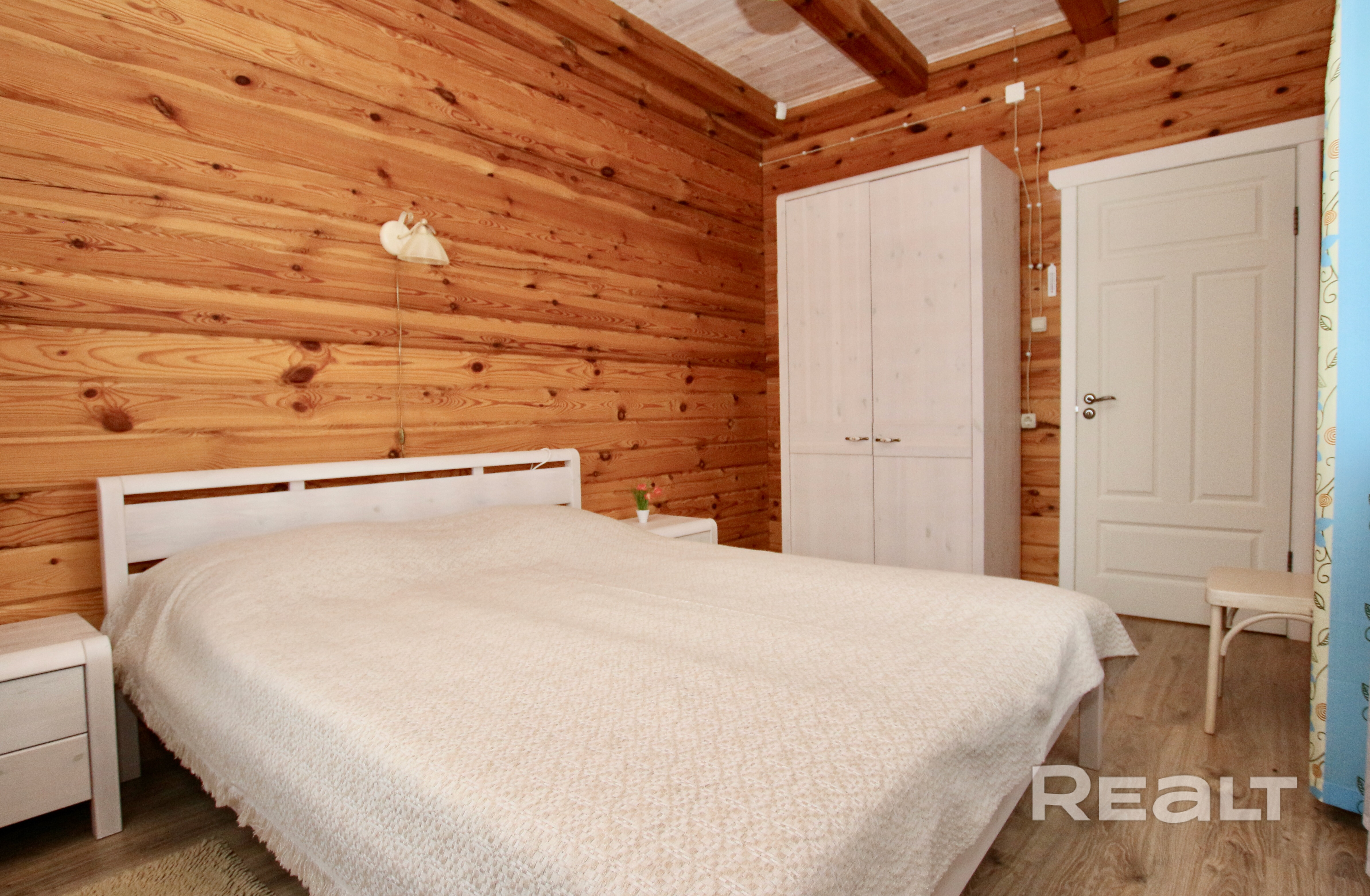Уютное шале для уединенного семейного отдыха на берегу чистого лесного озера. Наличие гостевого домика позволяет любителям рыбалки, подводной охоты или просто охоты чередовать семейный отдых с профильными мужскими) мероприятиями в любое время года. Хозпостройки. В большом доме все удобства, включая 3G, TV спутник и кондиционер, систему видеонаблюдения и сигнализации. Снаружи - прекрасный вид на озеро и "свой берег" с купальней. В округе множество озер. До города Лепеля - 35 км.