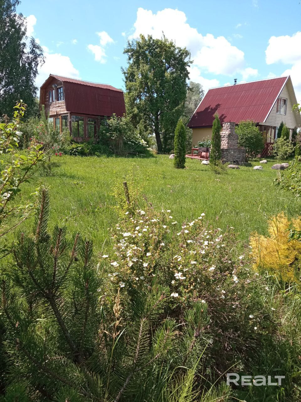 Участок ухоженный, сад с плодовыми деревьями и кустарниками, свой пруд, беседка. Баня с террасой и мансардой (на мансарде оборудованы спальные места). Красивый вид на озеро. Уединённое тихое место, вдали от соседей. До трассы Минск - Браслав 200 метров.