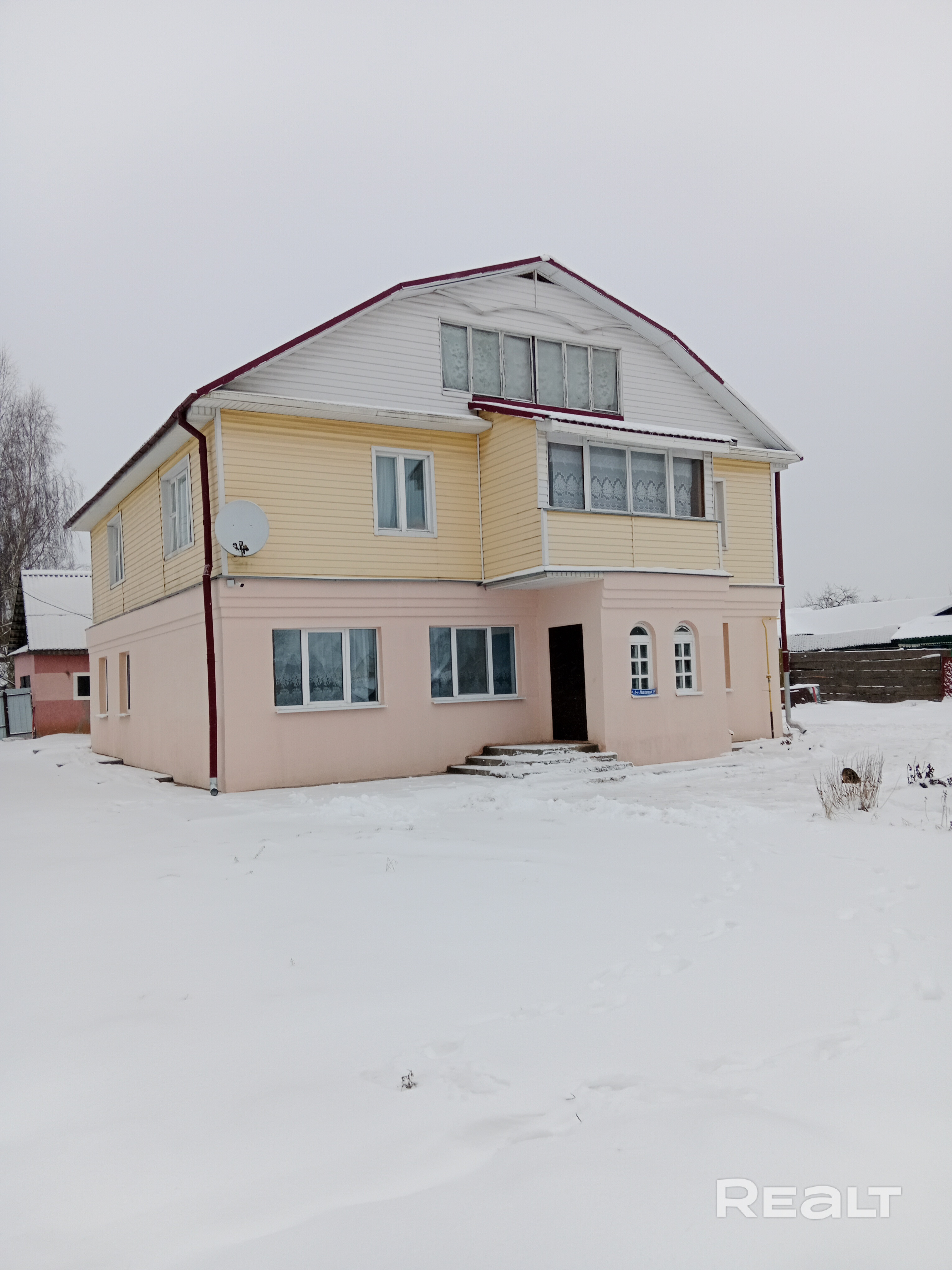 Дом теплый, все коммуникации в доме.Участок ровный с дренажом. В этом году установили новую кухню. На участке есть большой блочный сарай (60м²) совмещённый с гаражом (5х8). Асфальтированная дорога к дому. Ходит общественный транспорт, остановка 250м от дома. 500м до магазина. 2 школы и 2 детских сада в 3км. До центра города 10 мин на машине. В 5 минутах 2 озера. Возможен обмен на 4х комнатную квартиру в Витебске с доплатой или без. Продажа от собственника торг уместен