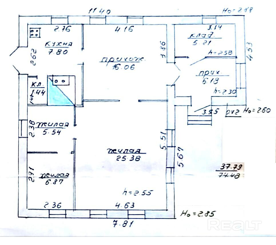 - Площадь кухни