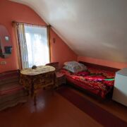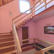 На втором этаже одна большая комната и небольшая спальня и отдельный санузел с деревянной лестницей