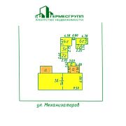 Общая площадь 52,2 м2, жилая 38,1 м2, кухня 6,4 м2.
