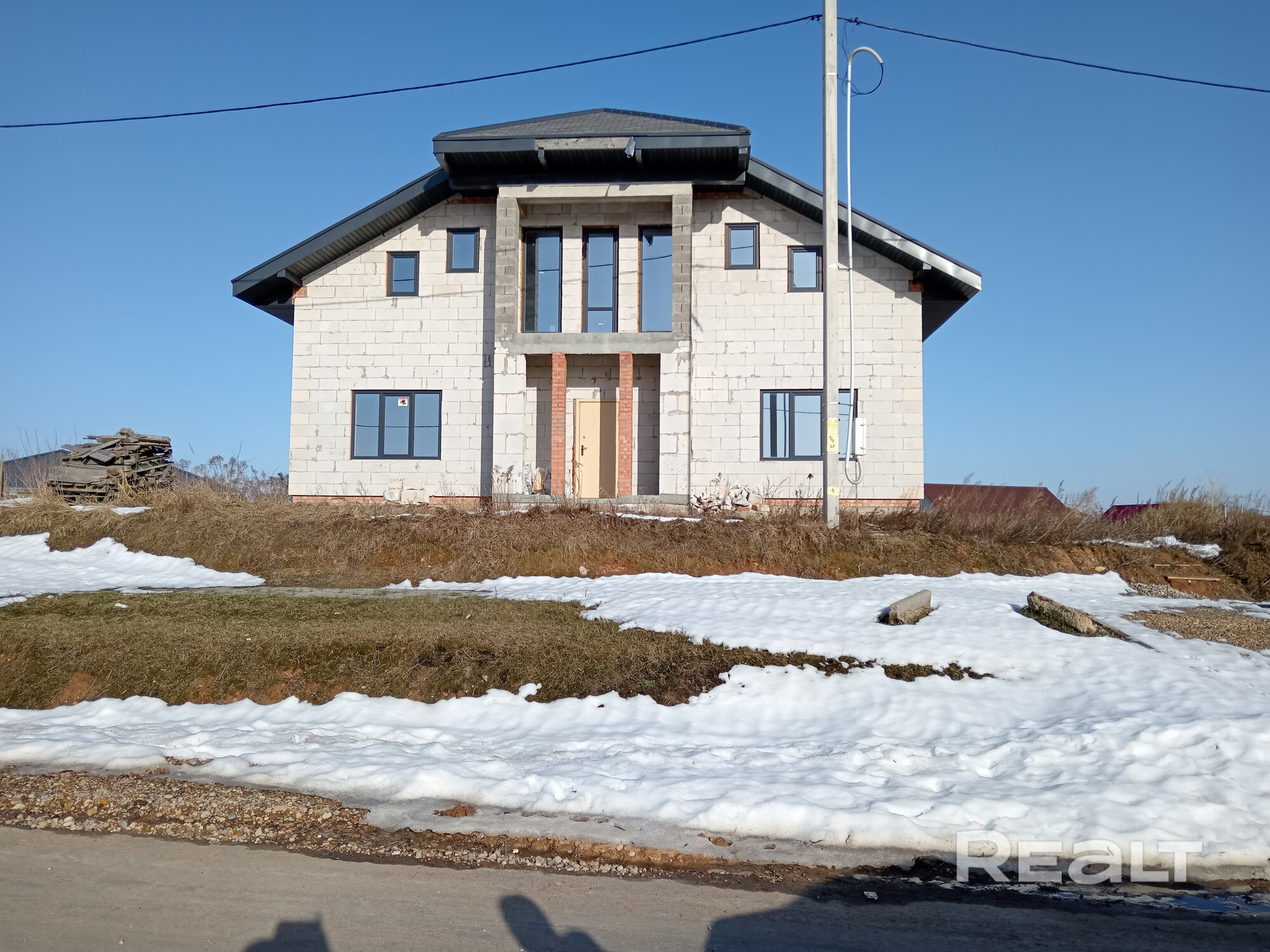Новый развивающийся район коттеджной застройки. Асфальтовая дорога, ходит общественный транспорт. Запланировано в районе строительство развитой инфраструктуры. Предлагается вниманию коттедж 2-х уровневый. Без внутренней отделки. Это позволит вам сделать свой дизайн в этом доме. В коттедже уже установлены ламинированные энергосберегающие окна и имеется портал выхода на терассу. Участок возле дома ждет ваших решений по его развитию.