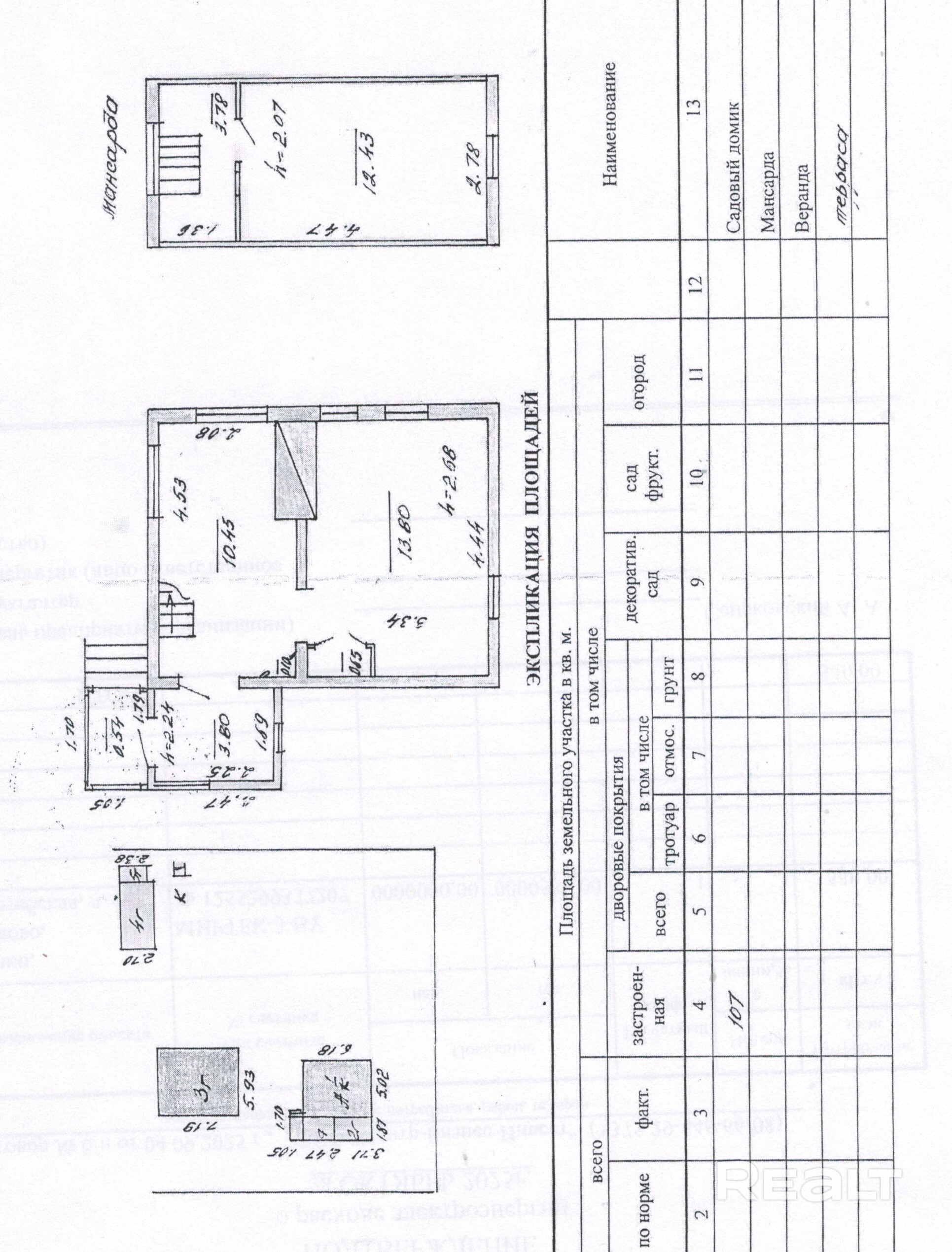 - Площадь участка