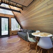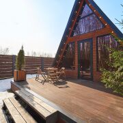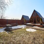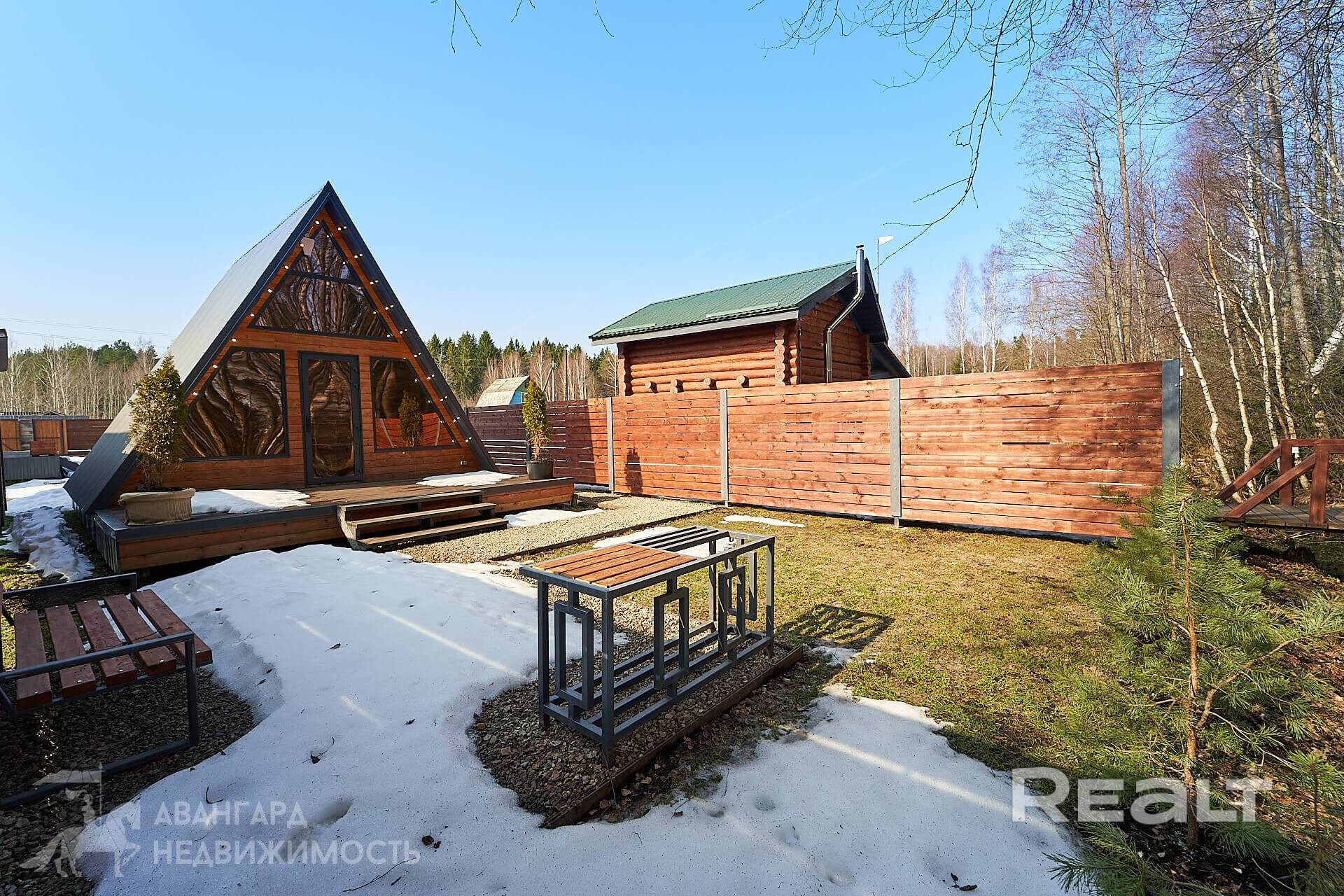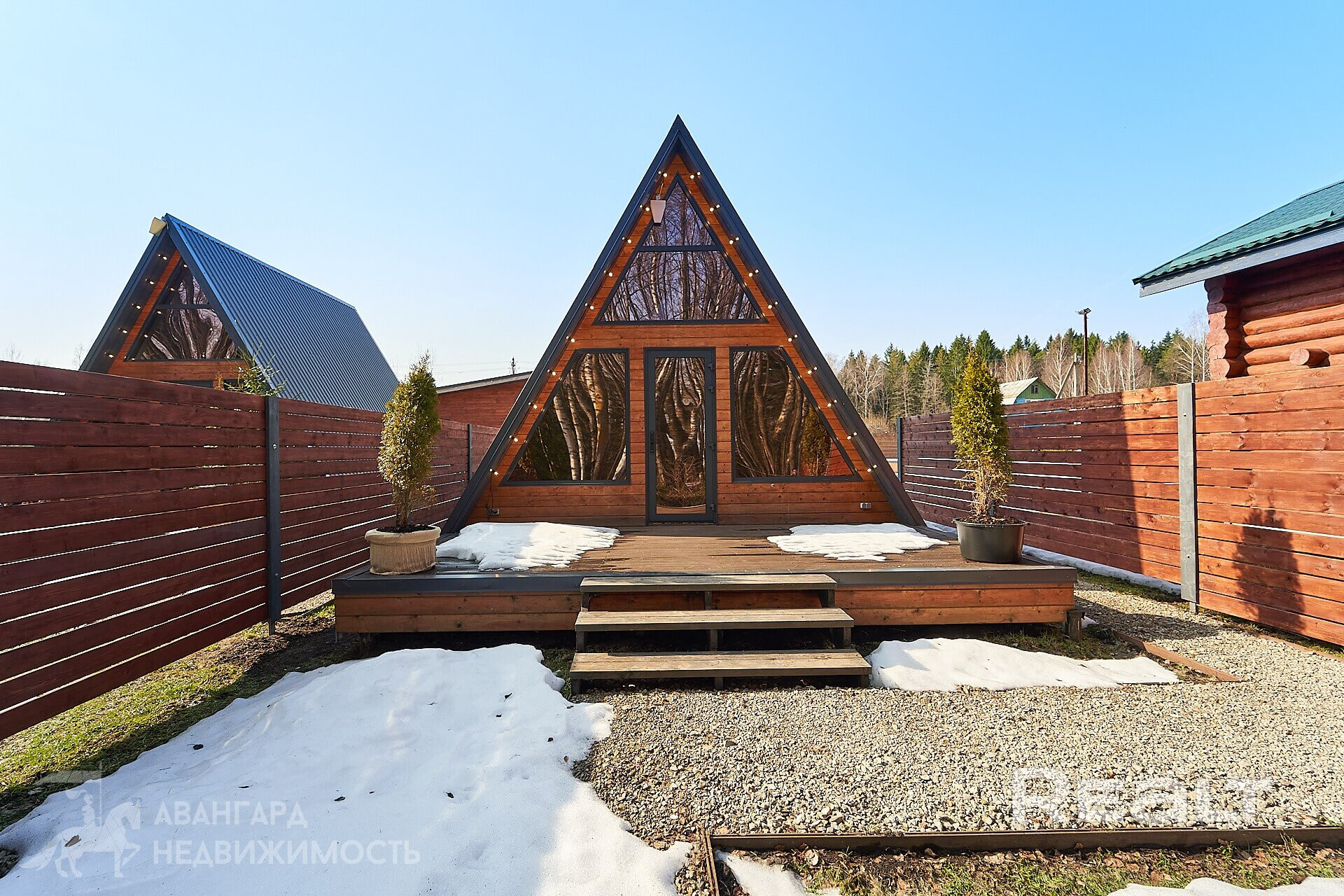 На территории 19 соток находится 2 одинаковых дома А-freim. Полностью готовых для проживания: