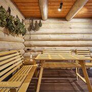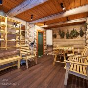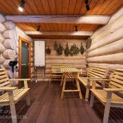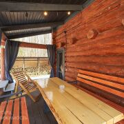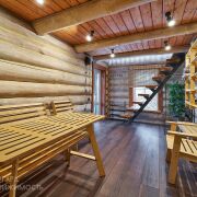 Баня 2-этажная из бревна диаметром 35-40 см. 1-й этаж: парилка с очень крутой печью (топить с улицы), душ, туалет, полностью мебелированная комната отдыха. 2-й этаж: сделана отделка, нет мебели (есть дизайн-проект). Также есть терраса с мебелью, мангальная зона со всем необходимым. Веники дуб 200 шт. Большой красивый дровник с дровами 5-6 кубов. Также сделана декоративная подсветка и летом газон. Баня так же зонирована красивым забором.