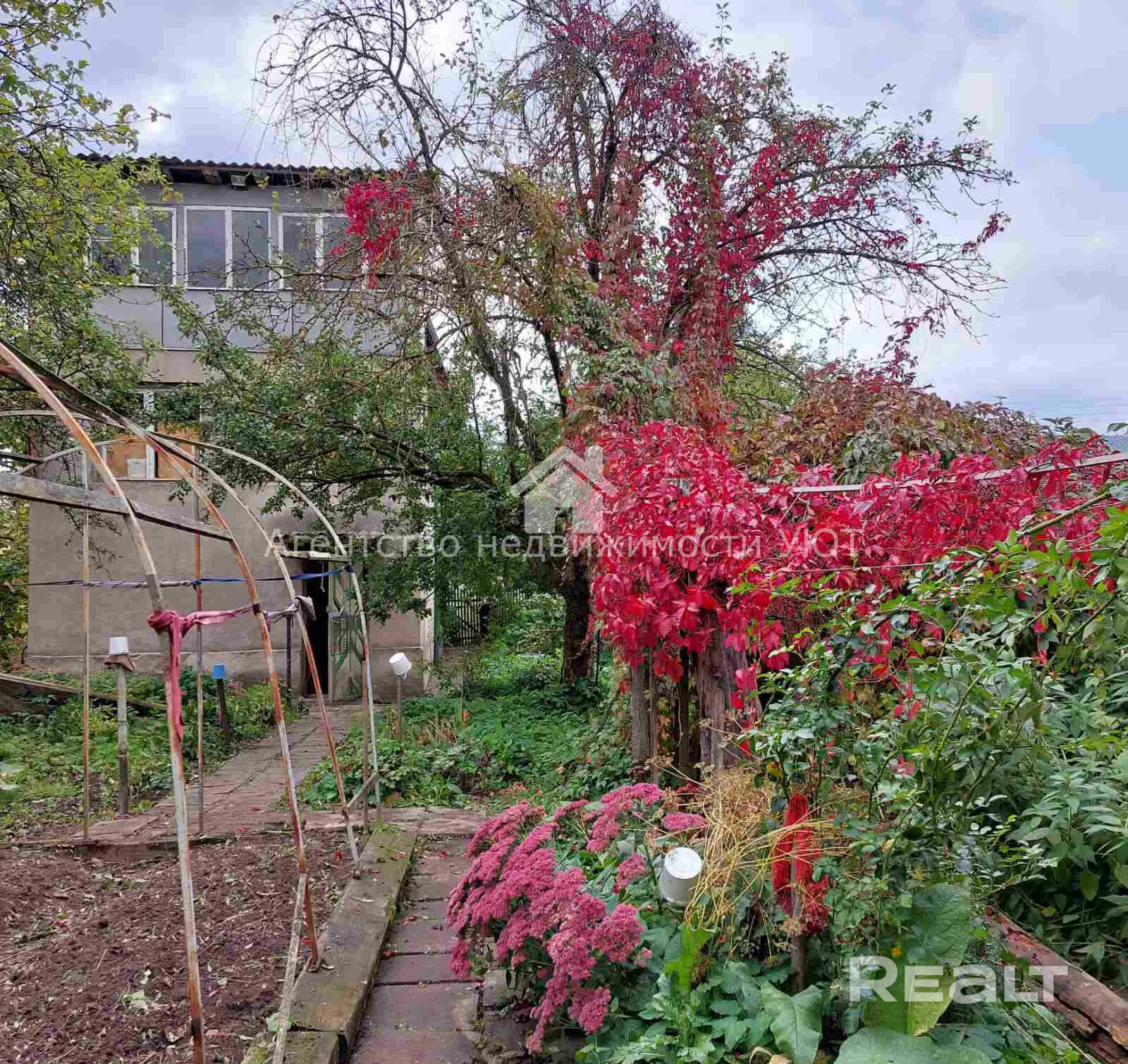 Продается дачный дом, проезд 1-й Гармоничный, Улановичи, в трех уровнях, кирпичный, 2007 года постройки, состоящий из 3 комнат. Крыша - шифер. На первом уровне – гараж, погреб. На втором уровне – две жилые комнаты, печь. На третьем уровне – большая жилая комната. Веранда на каждом уровне. Участок 4,6 соток. На участке есть баня, двухсотлитровая бочка для воды, туалет, колодец с питьевой водой, беседка, два места под парник 3х6, и двухэтажная хоз.постройка: 1-этаж из газосиликатных блоков – кухня; второй этаж деревянный – пчелярня. При продаже остается мотокультиватор «Крот», газонокосилка-триммер, бензопила, деревообрабатывающий и точильный станок, складная лестница. Договор № 140/5 от 24.04.2026г. ООО «Агентство Уют и К». УНП 391850235. Лицензия от 04 апреля 2017 г., выдана бессрочно Министерством юстиции Республики Беларусь и зарегистрирована в едином реестре лицензий за № 34200000021798 на право осуществления деятельности по оказанию риэлтерских услуг.