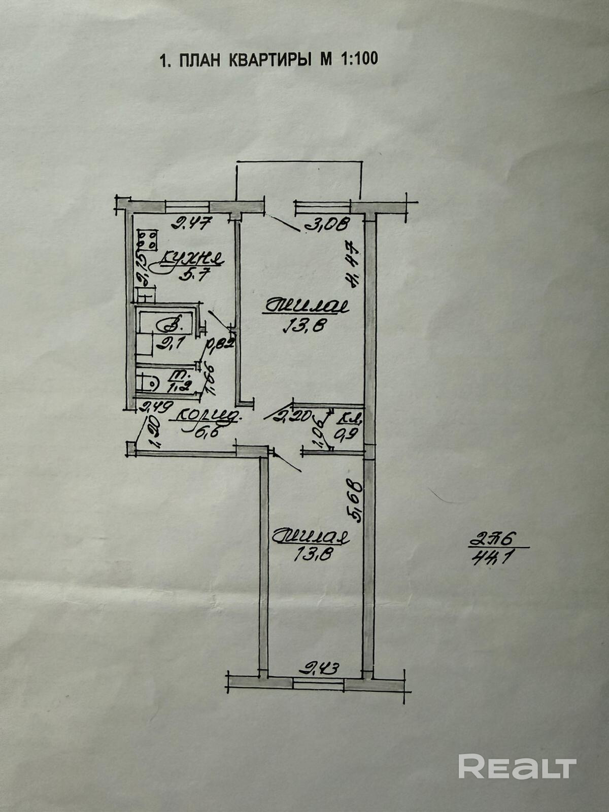 Продается 2-х комнатная квартира на 2 стороны общей площадью 44,1 м2. Квартира без отделки, готова воплотить все ваши дизайнерские задумки. Установлены окна ПВХ, входная металлическая дверь, по всей квартире залита стяжка на полу!, поменена сантехника, в том числе и общий стояк, балкон застеклен алюминиевыми развижными конструкциями. Отличная планировка с раздельными комнатами и посередине находится вместительная кладовая. Две жилые комнаты - по 13,8 м2.