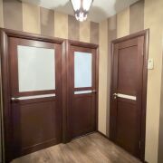 Поменены окна ПВХ, входная металлическая дверь, ламинат на полу, балкон застеклен алюминиевыми раздвижными конструкциями. Раздельный санузел. В ванной комнате установлена душевая кабина и была произведена замена всех сантехнический коммуникаций.