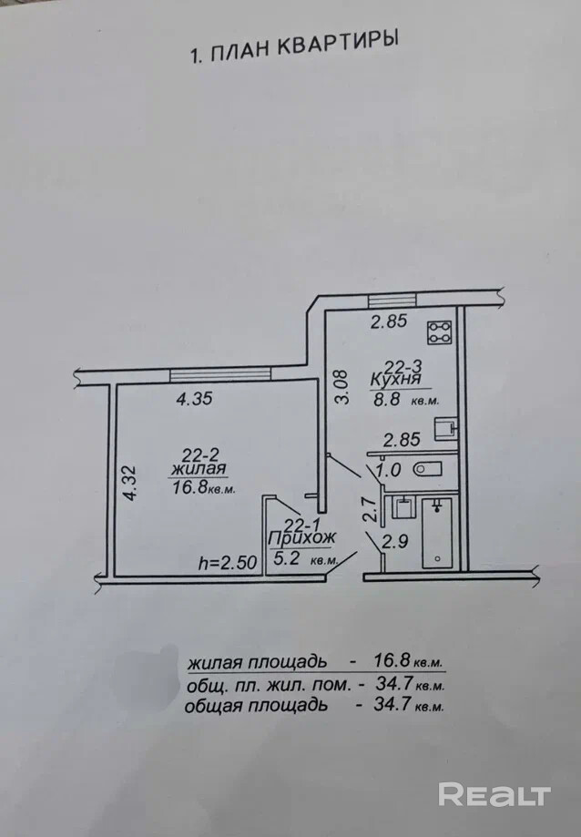 34.7 м²