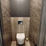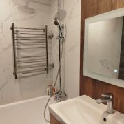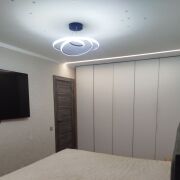 В квартире выполнена замена электрики. В спальне оборудованный шкаф-гардеробная. Пол – керамогранит и ламинат. Полы покрыты керамогранитом и ламинатом, потолки из гипсокартона с дополнительным освещением во всех комнатах, в санузле итальянская плитка и сантехника. В кухне и санузле установлена дополнительная вентиляция. Остается вся мебель и современная испанская бытовая техника — посудомоечная машина, духовой шкаф, газовая панель, вытяжка.