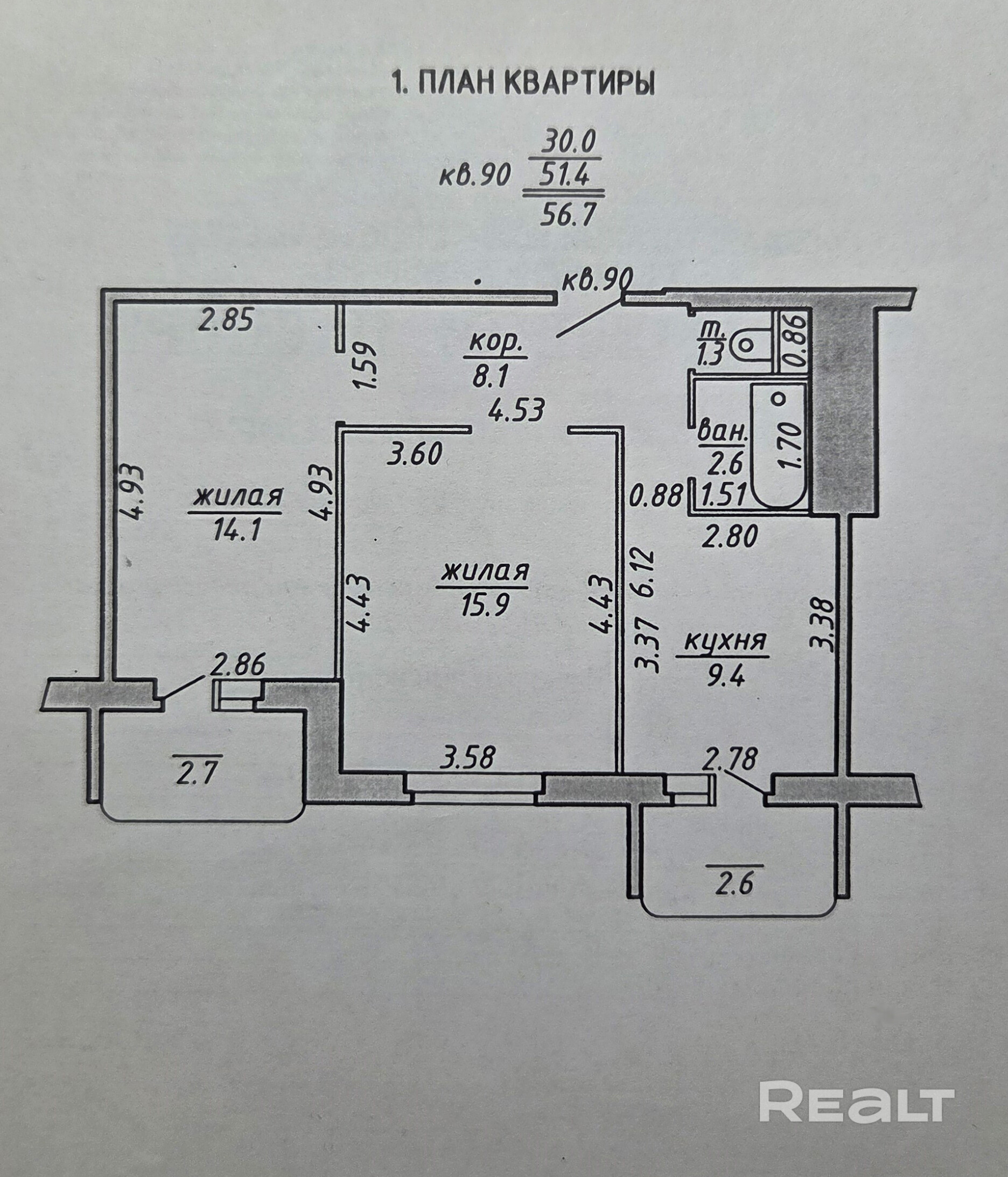 56.7 м²