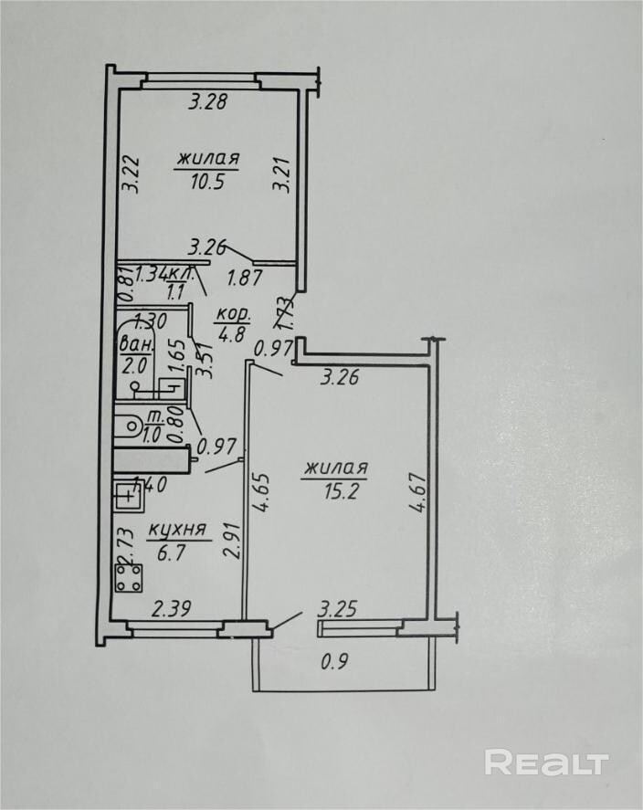 кухня — 6.7 кв.м.