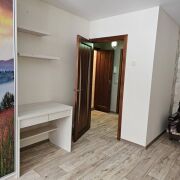 Квартира в хорошем жилом состоянии. В комнате установлена окно ПВХ, на кухне - деревянный стеклопакет. Пол - линолеум. Натяжной потолок в комнате, в остальных помещениях потолок - сайдинг. Межкомнатные двери - массив. Входная - металлическая. Тамбур на две квартиры. Счетчики на газ и воду. В шаговой доступности магазины, хорошее транспортное сообщение.