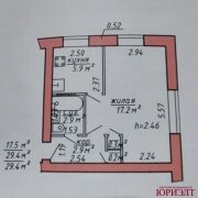 Общая площадь 29,4 кв.м., жилая 17,5 кв.м., кухня 5,9 кв.м.